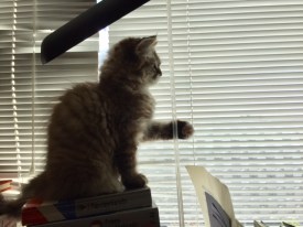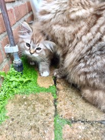 Ach, laat ons, het is gewoon een leuke traditie. En deze bijna koninklijke gast kreeg de toevoeging Prins omdat ik dat extra leuk vind. Hoe dan ook, ‘gewoon volk’ mag hem Percy noemen. Een prinsje van de soort die ons direct om de harige vinger wond. De hele rit naar zijn nieuwe huis niet mekkeren of miauwen maar gewoon lekker slapen. Thuis ging dat wel over. Hij blijkt een kwekkerd. Overal waar hij loopt laat hij zich horen. Als hij iets van ons wil, miauwen! De bak opzoeken of zijn huisgenoten, idem dito. Het gewenningsproces met die twee hier al enige tijd verkerende jongvolwassenen had wat voeten in de aarde. Geblaas over en weer was niet van de lucht. Maar na twee dagen begonnen de verhoudingen te ontdooien. Percy werd steeds beter geaccepteerd. Met name zijn grote ‘voorbeeld’ Pixel begon hem echt leuk te vinden en liep al snel te dollen. Dat kwam en komt dus wel goed in poezenland. Nu is hij nog klein en genieten we van het typerende kittengedrag. Gaat snel zat. Zijn pa was na een jaar al een kilo of zeven en uitgegroeid tot een heel stevige kater. Ook dat zal wennen worden voor de andere twee. Pixel is een meer dan stevige en gespierde kater, die redt het wel, maar onze Punkie is een soort van zielige kneus. En groeit niet meer. Dus die krijgt het wellicht lastig in de toekomst. Maar ja, die wil ook niet echt een liefdesrelatie met de nieuwkomer. Is wellicht een voorbode…