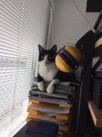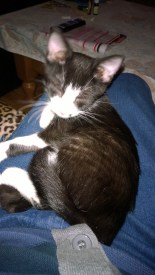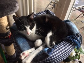 Het was kort nadat we onze oude ‘theemuts’ PoesPoes hadden moeten laten inslapen dat we het idee kregen om een jong poesje in huis te halen als gezelschap voor onze toen nog maar jonge kater Pixel. Die zocht in huis duidelijk naar zijn oude maatje, maar vond die uiteraard niet meer. Via via kwamen we terecht in het Asiel van Amstelveen waar we letterlijk in de rij mochten aansluiten voor een keuze uit een paar net binnengebrachte kittens. Een daarvan was brutaal en had een bekkie dat ons meteen overhaalde om ‘haar’ te kiezen. Want volgens het personeel van het asiel was het een ‘haar’. Maar aan het poesje kleefde ook een heftig verhaal. Samen met zijn kittenbroertjes (net voor ons gekozen door een ander echtpaar)was hij als juist geboren minipoes gedumpt in een vuilcontainer. Na dagen gered doordat iemand gepiep hoorde. En vandaar naar het asiel gebracht. Thuis was in ieder geval het een aanwinst. Dartel, dartel, en Pixel blij. Een bezoekje bij een aan het asiel verbonden dierenarts gaf al snel duidelijkheid over het geslacht van de nieuwkomer.