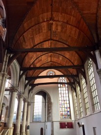 Intussen is de kerk op zondag weer een gebedshuis, doordeweeks een expositieruimte. Daarnaast liggen er de nodige bekende mensen uit hun tijd begraven. Je ziet oude burgemeestersgraven, maar ook Saskia (van Rembrandt) ligt er en telgen uit de familie Hooft. Maar ook admiraals, schilders, schrijvers en handelaren mochten in de kerk een groot of wat kleiner graf voor zich reserveren. Als je kijkt naar de gebrandschilderde ramen, de orgels, preekstoelen, en zo meer, vergeet je bijna dat men er ook die exposities houdt. Wat we daarvan zagen ging eigenlijk volledig verloren in de schoonheid van dat historische gebouw. Waar ik dus al die jaren nooit de moeite voor deed er eens binnen te kijken. Nou, dat is nu voorbij. Het is een schitterende kerk. Gaan we vast nog eens heen. Al was het maar om het ook andere geinteresseerden te showen. En als er dan een expositie wordt gehouden nemen we dat en-passant gewoon mee….