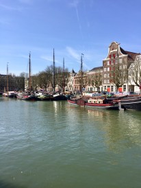 We hadden weer eens een paar kaartjes gekocht voor een dagtripje, de lente leek in zicht en de behoefte om weer eens iets aardigs te ondernemen verdrong de weerstand om weg te gaan. Dus togen we na enig overleg naar Dordrecht. Een stad die we al een paar maal eerder bezochten, maar nu eens uitgebreid wilden verkennen. De trein die ons bracht reed via een stuk of wat tussenstops (het was een Intercity, maar leek wel een Sprinter…) binnen 1,5 uur naar de Dordtse eilanden. Waar het gezellig druk bleek te zijn. Mooi weer, maar flink frisse wind. De ligging aan het vele water zorgde voor kilte. Nam niet weg dat we al snel een leuk ogend koffietentje vonden. Maar het bleef bij ogen. Zelden zo’n chaos in de bediening meegemaakt (en vooral ook gehoord).