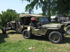 Acht daarvan moesten bestuurbaar zijn op alle vier de wielen. Binnen enkele maanden had Willys de eerste Jeep klaar en even later ging de bestelde reeks naar het leger. De Jeeps kwamen in latere jaren ook uit de fabrieken van Ford trouwens. De wagens werden aangedreven door een kleine 45 pk sterke benzinemotor die de schitterende naam ‘Go Devil’ droeg. In de loop van de oorlogsjaren werd de Jeep in totaal ruim 600.000 keer gebouwd en het bleek een zeer waardevol onderdeel van de Amerikaanse oorlogsvoering. Jeeps doken overal in de wereld op waar de Amerikanen actief waren. Ze werden gebruikt als vervoermiddel voor officieren, als mitrailleurcarrier, ambulance, tractor voor vliegtuigen, verkenningsvoertuig of noem maar op. De wagens, met hun karakteristiek huilende motor, werden met de eerste parachutisten meegestuurd die op 6 juni 1944, dit jaar 65 jaar geleden, in Frankrijk landden in het kader van de invasie.