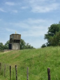 Bovenop die torens een platform en dat was te bereiken met steile metalen of houten trappen. Het systeem heeft uiteraard nooit om het eggie hoeven dienen. De Russen kwamen niet, gelukkig maar, en onze radar- en afluisterapparatuur werd zodanig goed dat we de menselijke observaties niet meer nodig hadden. Van de oorspronkelijke 276 uitkijkposten (een deel was op bestaande hogere bebouwing gevestigd) bleven er maar weinig over. Naar verluid zijn er nog maar 19 zichtbaar in het landschap. Een daarvan bezochten we onlangs. In een plaatsje waar ik zelf nog nooit gehoord had zelfs, Strijensas, midden in de Mariapolder, aan het water niet te ver van de Moerdijkbruggen. Deze is gebouwd op een oude kazemat (1938) en heeft dus een behoorlijk fundament.