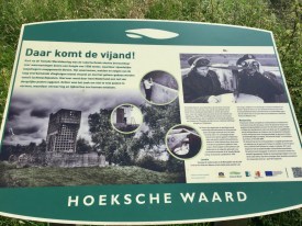 Tijdens de open dag die in de lokale krant werd aangekondigd en door een van onze lieve vrienden uit de omgeving opgepikt, beklommen we die toren (gevaar voor eigen leven..) en keken uit over de polder en de rivier. Voor mij is dat geen genoegen, want last van hoogtevrees, maar toch wel even een aardige indruk van hoe zoiets in de praktijk moet zijn gegaan. Kompas, verrekijker, op de rand van de toren aanduidingen van welke plaatsen in een bepaalde zichtrichting te vinden waren. Men houdt de boel hier in ere. Vrijwilligerswerk. En zo hoort het ook. De geschiedenis was mij onbekend. En ik vind het knap te bedenken dat al die lui die dat werk deden ook in dezelfde boekjes als ik indertijd hun basiskennis opdeden om al die Russische vliegtuigen te kunnen onderscheiden van de laagvliegers uit eigen gelederen. Ik ben blij dat ik dit heb gezien. Net als die polder, op de uiterste noordoostpunt van de Hoeksche Waard. Ik was verbaasd dat ook daar mensen wonen…maar dat is een andere discussie…