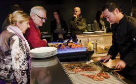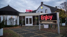 Altijd fijn als je mekaar rond de tafel kunt verstaan. Enjoy biedt alles van voor- tot hoofdgerecht, van Chinees/Indisch eten tot Nederlands en men biedt allerlei soorten vlees en vis aan, maar zeker ook vegetarisch voedsel voor hen die dat op prijs stellen. Wie zijn of haar gerechtenkeuze wil laten bakken door de erg aardige koks, kan dat doen. Dat is toch een beetje de charme van deze zaken, maar gelukkig hoefde het niet als enige. Alles wat verder ter tafel komt zonder die koks is warm of heet genoeg om lekker te kunnen eten. Koud waren de toetjes. Een groot aanbod ook weer, en het ijs was buitengewoon smakelijk. Voor ieder wat wils. Enjoy maakt haar naam waar. Een leuke zaak waar je betaalbaar smakelijk kunt eten en drinken. Grote parkeerplaats zorgt voor extra comfort en de bediening is buitengewoon vriendelijk. Rapportcijfer: 8.7 ! (Beelden: Enjoy Waalre website)