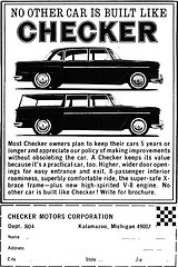 De meeste (met name Marathons)Checkers gingen dus als taxi aan de slag. Vrijwel onverwoestbaar sterk gemaakt en simpel van onderhoud. Door de relatief hoge deuren en vierkante vormen was in- en uitstappen geen enkel probleem en sommige van deze taxi’s vervoerden 8 personen tegelijk. Tot 1965 zaten er door vliegtuigmotorbouwer Continental geleverde zescilinderblokken in, later kwamen diverse motoren van Chevrolet in het vooronder. De wagens bleken zo praktisch en ook gevraagd, dat Checker ze gewoon jarenlang bleef bouwen, zonder al te veel wijzigingen. Vaak een opmaat voor succes in autoland. Zelfde zag je bij de taxi’s van Austin en Toyota. De Marathon van Checker is zo sterk dat er heel wat van die wagens onder zware omstandigheden toch gewoon 1 miljoen kilometers mee gingen.