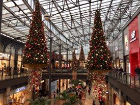 Het leidt ertoe dat mensen van heinde en verre deze plek opzoeken. Nederlanders maken zeker voor 40% de klandizie uit. Al was het maar omdat parkeren in de zeven parkeergarages gratis bleek. Dat scheelt veel. Maar toen waren we nog niet buiten geweest. Even een luchtje scheppen in de door regen en wind intussen herfstachtige ambiance buiten maakte dat we een kerstmarkt ontdekten van een paar honderd stallen. Ongekend. En weer met heel andere zaken in de aanbieding dan we een dag eerder in Keulen zagen. En ook hier, ondanks het weer, geweldige sfeer en best gezellig druk. Dat Centro staat min of meer model voor de vele shopping-centra die je tegenwoordig in veel Duitse steden tegenkomt.