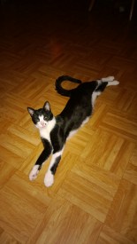 Pixel is nu de jongvolwassene en leert de kleine trucjes. Samen hebben ze lol. Soms wat minder. Dan is Pixel het gedoe zat en spring te kleine in zijn nek om hem met wat stevige beten bij te brengen dat respect ook hoort bij het ouder zijn. Maar wat een plezier hebben we aan die twee, beste lezers…..De overige veranderingen die we sinds 2006 over ons heen kregen zal ik u in het kader van het verhaal nog maar even onthouden. Maar neem van mij aan dat het er veel waren. Tien jaren is niet niks. Het is een hele periode en soms kom je dan heftige zaken tegen, in andere gevallen ook emotionele. Een mens wordt nu eenmaal als alles goed gaat ouder, maar ook wat wijzer. En in die wijsheid vervangen we nu de nodige meubels en ruimen wat overbodige zaken op. En nu geef ik mijn aandacht even aan de poezen. Er wordt uitgebreid gesnord naast me….