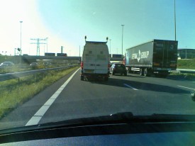 Bij de splitsing voor een kruising naar links of rechtsaf joeg de Passat (zonder zwaailicht en sirene) langs de links afbuigers, wrong zich toen alsnog naar links en negeerde het rode stoplicht. In de regelgeving mag dan staan dat de politie voorrang mag nemen als dat zo uitkomt maar dan wel met alle signalering aan toch? Dit gedrag was asociaal en vooral gevaarlijk. En nergens was terug te vinden waar deze lieden in uniform nu zo snel heen moesten. Maar ook ambulancebroeders kunnen er wat van. In een file bij Hoevelaken (als altijd) kwam ons over de vluchtstrook een ambulance met gillende sirenes voorbij. Hij denderde voort en wrong zich toen een paar honderd meter voor de afslag Utrecht tussen de andere auto’s door naar links. Zette sirene en zwaailichten af en reed verder in een meer normaal tempo. Later passeerde ik de auto zelfs bij Huizen. Het ging hen kennelijk om filevermijding. Probeer dan de volgende keer maar respect te verkrijgen van normale automobilisten. Kennelijk is alles geoorloofd als een macho aan het stuur zit van een auto met dit soort uitmonstering. Het blijft wennen. Toch zou ik pleiten voor een optielijst bij de dealer of leasemaatschappij die in 90% van de gevallen dit soort burgervoertuigen levert. Zet spiegels, richtingaanwijzers en snelheidsmeters gewoon op de optielijst. Extra voor laten betalen. Wie dat dan niet bijbestelt kan meteen een speciaal kenteken verkrijgen. Met de letters MAC of ASO. Zijn ze goed herkenbaar en weten de andere weggebruikers wat ze kunnen verwachten. Wellicht dat dit eindelijk helpt om die botterikken na te laten denken over wat een auto eigenlijk is. Naast een vervoermiddel ook een dodelijk wapen. Terroristen weten dat al. Maar je wilt daarmee toch niet worden vergeleken??!! (Beelden: Yelowbird archief/internet)