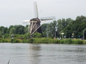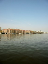 Maar wat een prachtig gebied. Alles landerijen in de omgeving om je heen, mooie huizen en dito boerderijen en naast je zo’n klein kronkelend riviertje dat je als je stroomopwaarts vaart terug brengt naar Ouderkerk, de Amstel of zelfs Amsterdam. Fietsend kom je op enig moment weer uit bij een bruggetje dat je aan de zuidoostkant van de Ronde Hoep brengt waar je dan kunt kiezen om verder te gaan in westelijke of oostelijke richting. Amsterdam zie je op afstand liggen. Hemelsbreed wellicht net aan 10 km maar bij helder zicht erg dichtbij. Net als Amstelveen dat ook steeds hoger bouwt en soms de verkeerstoren van Schiphol afdekt die je bij helder zicht ook kunt zien. Het is en blijft een prachtig gebied.