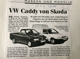 De lijnen vanuit Volkswagen richting toekomst van het Tsjechische merk waren intussen uitgezet en daarin pasten veel moderner auto’s. In feite was die Felicia in opzet nog steeds een echt Tsjechische auto, voorzien van Duitse techniek. Maar je kon er ook nog steeds een Pickup, stationcar, VanPlus en zelfs een pret-Pick-up (FUN) van krijgen. De Felicia kon ook worden geleverd met Skoda’s eigen lichtmetalen blokken, nu voorzien van MPI-techniek, maar tevens met een goed presterende 1.6 liter VW motor en de aloude 1.9 grote diesel uit de Golf van die jaren. De Felicia was overigens echt een enorme stap vooruit en de auto kwam in veel markten goed aan. De kleine bedrijfswagens binnen het gamma waren ook in veel landen buitengewoon gewild. In eigen land waren ze bijna niet aan te slepen, maar zeker ook in een aantal andere markten zeer gevraagd. Zo kon VW door de Balkanoorlogen in de jaren negentig in Sarajevo niet langer haar aloude Caddy bouwen. Die auto baseerde zich nog op de Golf 1, maar was in veel landen, ook bij ons, zeer populair. Om aan het gemis van dit soort wagens tegemoet te komen besloten VW en Skoda om de Felicia Pick-up in Duitsland als VW Caddy op de markt te brengen.