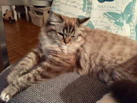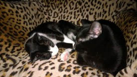 En zagen we ineens dat de grote lieve kater veel last kreeg van de kleine vechtersbaas. Die kreeg weliswaar op zijn beurt best klop, maar deed geen stapje terug. Viel gewoon aan en op enig moment verjoeg hij die zwarte huisgenoot van ongeveer elke zit- of lig plek. De grote kater weet niet precies hoe om te gaan met dat langharige tuig, moppert wel, maar wordt niet boos. Gaat ‘af via de zijdeur’ als het nodig blijkt en hij het geknok zat is. De hiërarchie duidelijk gewijzigd. En we zoeken naar dat boze karaktertrekje wat hij nog wel had toen nummer 2 onder ons was. Ging dat dan toch een uiting van het feit dat die kat chronisch ziek was door zijn slechte start als kitten?! Het moest wel. We grijpen overigens niet in bij de verdeling van de macht hoor. Nog steeds kunnen ze mekaar hebben, maar de door zijn afkomst als meegaand bekendstaande jonge prinselijke kater is geen exemplaar om zonder handschoenen aan te pakken. Zoveel is ons wel duidelijk. Wonderlijk genoeg zijn ze midden in de nacht net zulke goede vriendjes als nummer 1 en 2 dat waren als de lichten werden gedoofd. Soms snap je die wereld van katten echt niet. Maar dat maakt ze ook zo boeiend. En vandaar dat ik er iets over schreef….