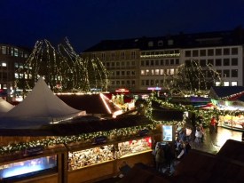 De Kerstmarkt op zich is niet de grootste onder de Duitse steden maar door het compacte karakter is hij wel heel overzichtelijk en goed te behappen. De omliggende winkels en horeca doen de rest. Mijn vaste adresje daar is de winkel van Hunerbein. Voor trein- en modelliefhebbers een must. Je weet echt niet waar je kijken moet en de mensen zijn er aardig en hulpvaardig. De Mayerische Buchhandlung is er ook zo een. Lekkere zaak is ook de Galleria Kaufhoff waar je zo heerlijk een stukje taart met een warm drankje kunt halen in het warme en fraai versierde restaurant. Het nieuwe winkelcentrum (aan de andere kant van het centrum, als je het bekijkt vanuit het oude stadhuis) is een aanwinst. Vier enorme etages winkels en horeca, inclusief toiletten en zo meer. Het heeft de stad echt verrijkt.