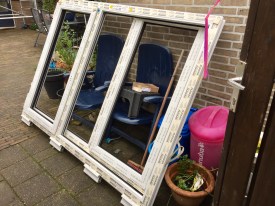 Al eerder berichtte ik over onze plannen die we dit jaar smeedden, het huis te voorzien van een soort facelift. Wat meer isolatie, moderniseringen en zo meer. Maar wel moesten we gewoon kunnen blijven leven tijdens die gebeurtenissen. Immers even onderweg met de katten bij ons is ook niks, al werd het door de lieve vriendin uit het Zuid-Hollandse meerdere malen aangeboden. Dus door de afgelopen weken heen werd van alles en nog wat gedaan terwijl wij op een eilandje van pakweg 25m2 samenhokten. Een nieuwe elektrische verwarming in de keuken, inductiekookplaat en verwijdering van het gasstel dat ons tien jaar diende. Aanleggen nieuwe elektra was nodig, want zo’n stel stroomverbruikers vraagt professioneel ingrijpen van een ons bekende installateur. Nou toen dat klaar was werd het wachten op de mannen (werken geen vrouwen in die handel..) van de kozijnen en nieuwe HR++-ramen.